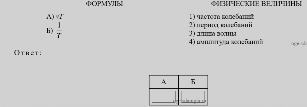 Установите соответствие между формулами для расчёта физических величин и названиями этих величин. В формулах использованы обозначения: m — масса грузика; k — жесткость пружины, l — длина нити, g — модуль свободного падения. К каждой позиции первого столбца подберите соответствующую позицию второго столбца и запишите в таблицу выбранные цифры под соответствующими буквами.