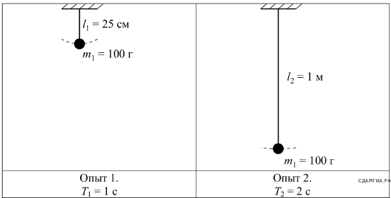 4) Длина нити первого маятника меньше длины нити второго маятника.