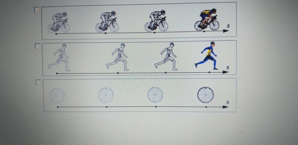 На рисунках показаны положения движущихся тел через равные промежутки времени: едущего велосипедиста, бегущего человека, катящегося колеса. На коких рисунках движение тел является равномерным?