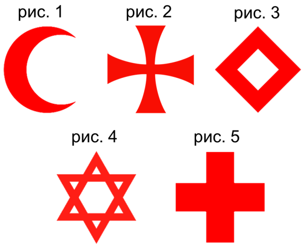 Какие из символов, представленных на рисунках, не используются как официальные эмблемы Международного Комитета Красного Креста?