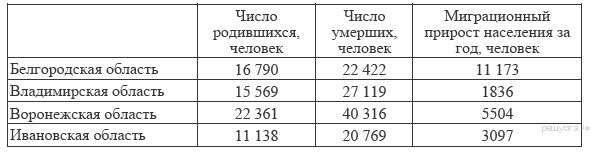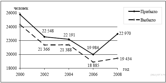 Используя данные таблицы, определите, в какой области в 2008 г. наблюдалось наибольшее превышение числа прибывших на постоянное место жительства над числом убывших.
