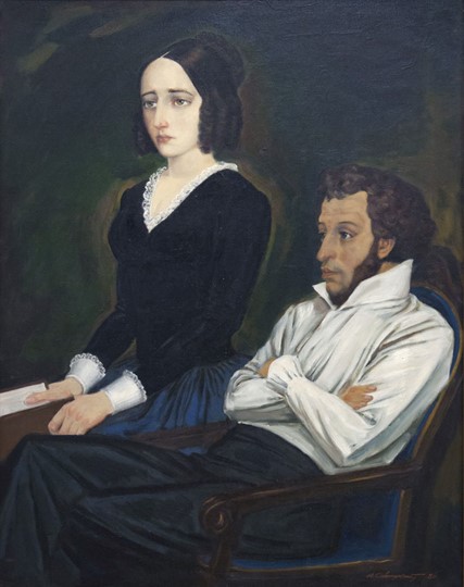 Какую фамилию носила женщина, изображённая на картине Михаила Савицкого рядом с А. С. Пушкиным? Укажите эту фамилию в именительном падеже.