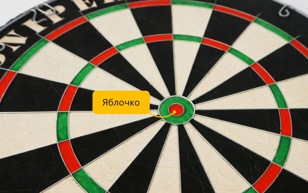 Сколько очков получает игрок в дартс при попадании в "яблочко"?