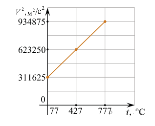 На рисунке изображен график зависимости величины среднего значения квадрата скорости молекул идеального газа от температуры. Определите молярную массу этого газа. Ответ выразите в граммах на моль и округлите до целого числа.