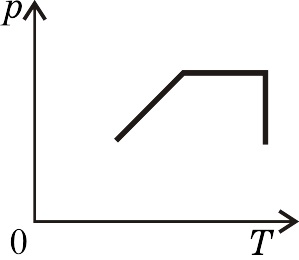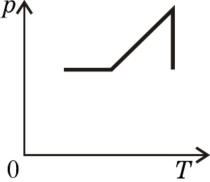 Идеальный газ сначала нагревался при постоянном объеме, потом его объем увеличивался при постоянном давлении, затем при постоянной температуре давление газа уменьшилось до первоначального значения. Какой из графиков в координатных осях p - T соответствует этим изменениям состояния газа? Масса газа постоянна.