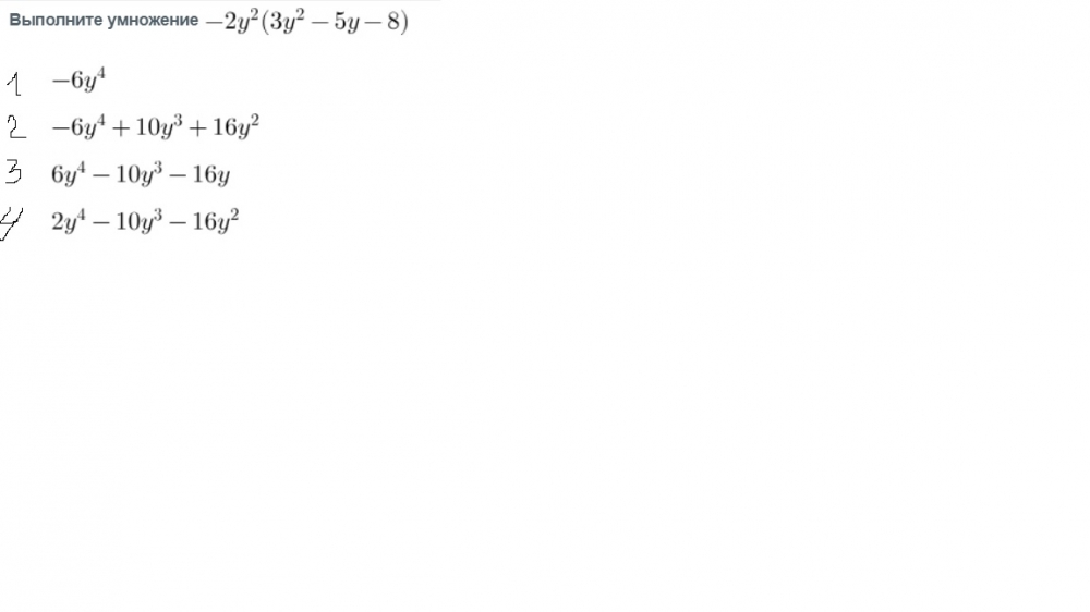 Запишите в виде многочлена выражение (3y - 2)·(y2 - y + 1)