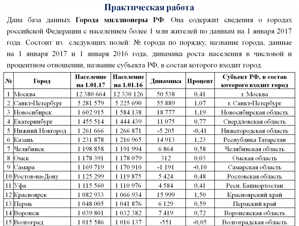 Население на 1.01.17> 1 100 000 И (Динамика> 50 000 ИЛИ Процент>0,5)