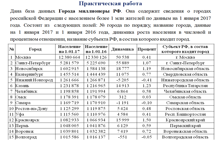 Какую строку будет занимать запись, содержащая сведения о Волгограде, после сортировки сначала по убыванию поля «Город», а затем по возрастанию значения поля «Динамика»