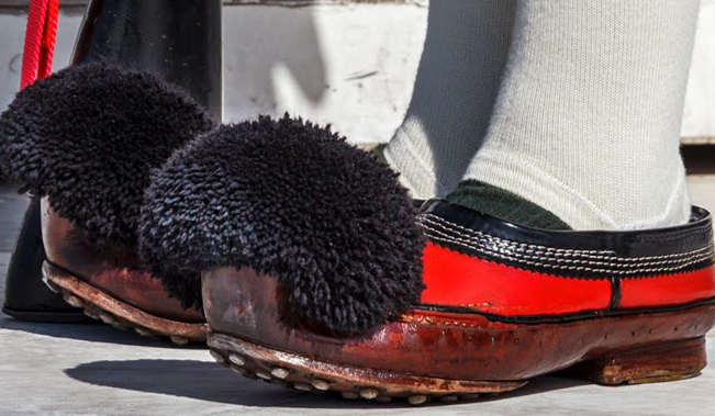 Как называются греческие кожаные ботинки с большими чёрными помпонами, подбитые стальными гвоздями? В ответе укажите слово в нужной форме, составленное из приведённых ниже букв. Например, шлёпанцы