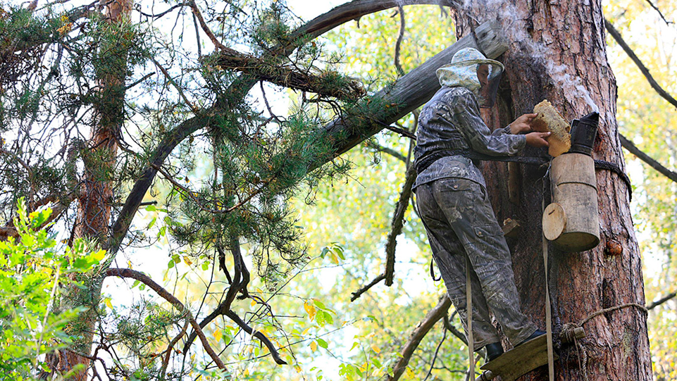 Напишите, где в России до сих пор сохранилось форма пчеловодства с собиранием мёда диких пчёл из дупел деревьев: