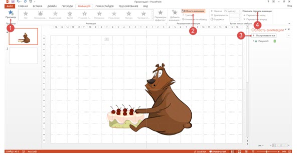 - Установить порядок следования всех анимаций слайда.