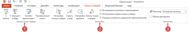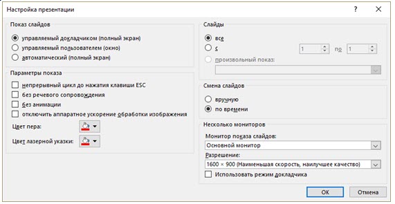 - Задавать дополнительные параметры для показа каждого слайда презентации.