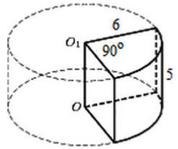 Найдите объем V части цилиндра, изображенной на рисунке.