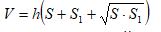 Объём усеченного конуса, высота которого равна h, а площадь оснований равны S и S1, вычисляется по формуле: