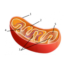 Установіть відповідність між позначенними структурними частинами мітохондрій та їхними назвами: