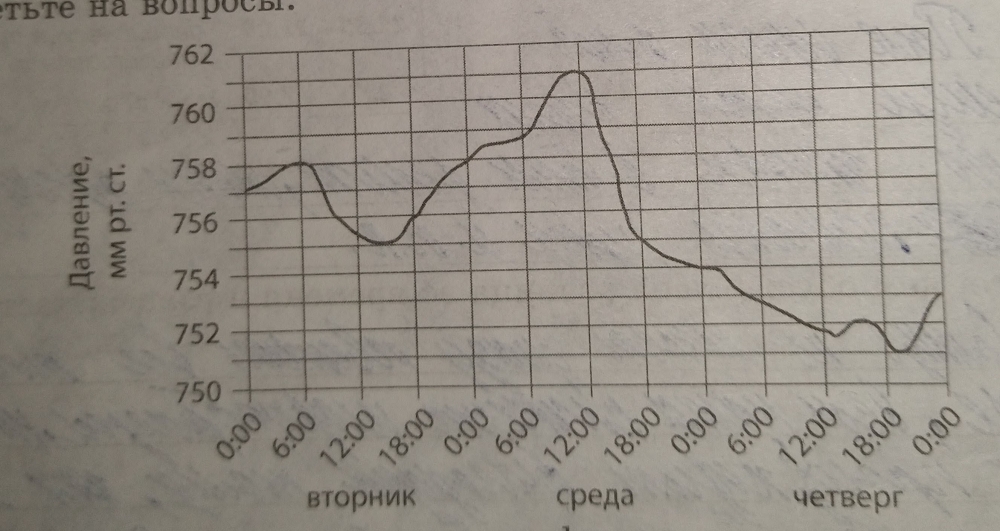 На метеорологической станции города N были проведены наблюдения за атмосферным давлением. По результатам наблюдений метеорологи построили график изменения атмосферного давления. Посмотрите график и ответьте на вопрос.