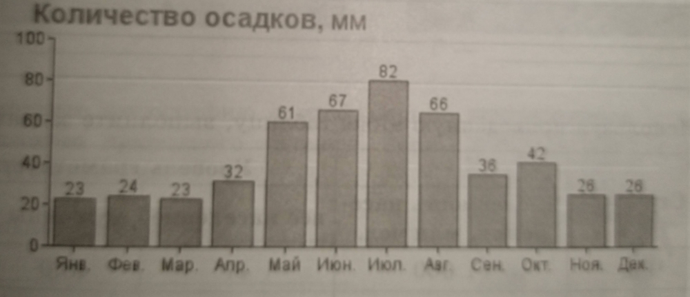 Чему равно количество осадков, выпавших в зимнее время? В ответе указать только количество осадков