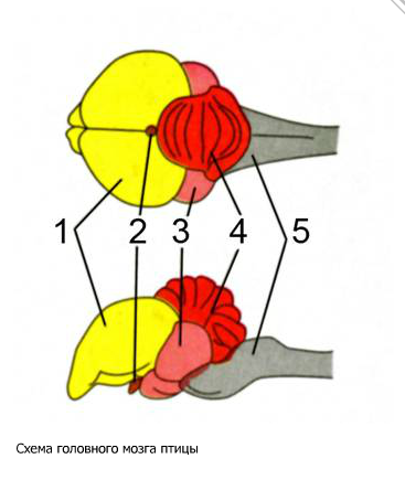 Количество отделов головного мозга у птиц: