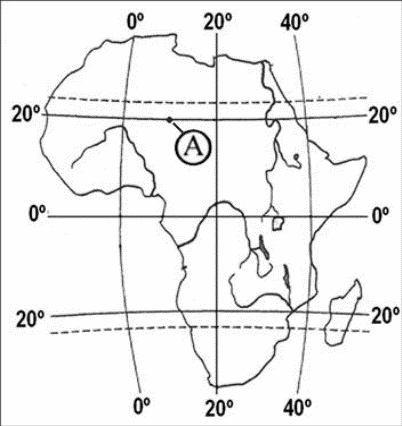 Какие географические координаты имеет точка, обозначенная на карте Африки буквой А?