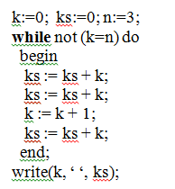 Что будет выведено, когда при выполнении алгоритма, записанного ниже, k станет равным 3?