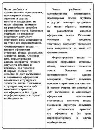 Дан фрагмент текста ДО (слева) и ПОСЛЕ (справа) форматирования. В обоих вариантах используется шрифт одного семейства (гарнитуры) Times New Roman. Какие из перечисленных ниже свойств были изменены при форматировании текста?