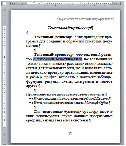 - продолжать набор текста, не обращая внимания на конец строки, - на новую строку курсор перейдёт автоматически