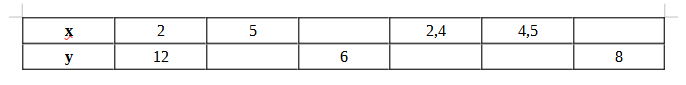 Заполнить таблицу по теме "Обратная пропорциональность"
