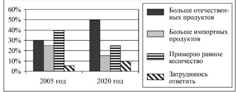 В 2005 г. и 2020 г. совершеннолетним жителям страны Z предложили сравнить количество отечественных и импортных продуктов в магазинах