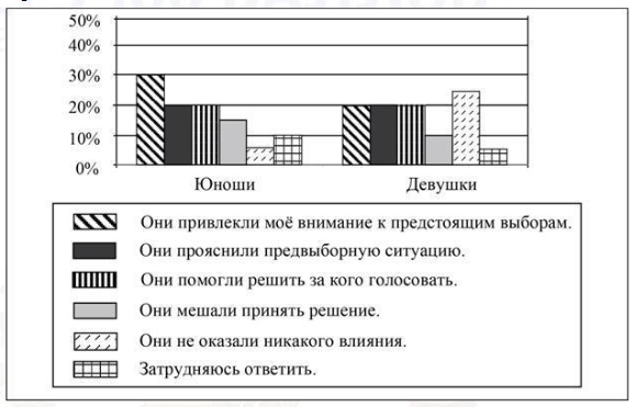 - Равные доли юношей ответили, что социальные сети и Интернет прояснили предвыборную ситуацию и помогли решить за кого голосовать