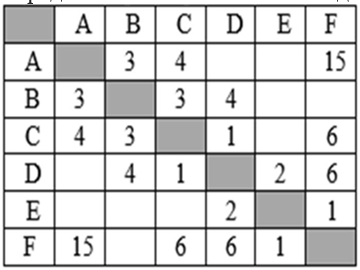 Между населёнными пунктами A, B, C, D, E, F построены дороги, протяжённость которых (в километрах) приведена в таблице.