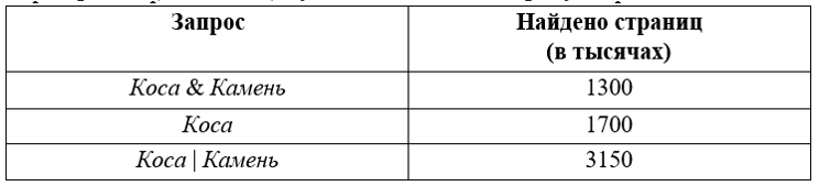 В языке запросов поискового сервера для обозначения логической операции «ИЛИ» используется символ «|», а для логической операции «И» – символ «&».