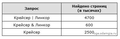 В языке запросов поискового сервера для обозначения логической операции «ИЛИ» используется символ «|», а для обозначения логической операции «И» — символ «&».