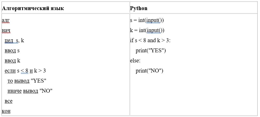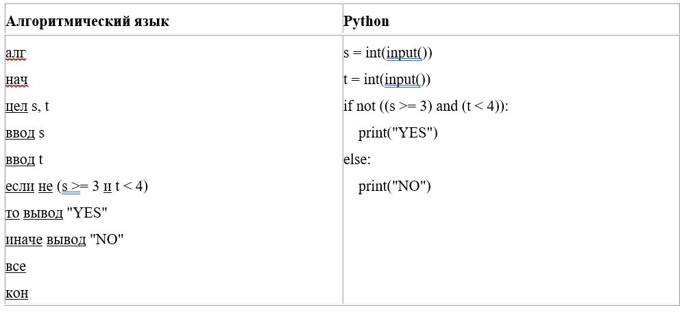 Укажите целое значение параметра А, при котором для указанных входных данных программа напечатает «NO» пять раз.