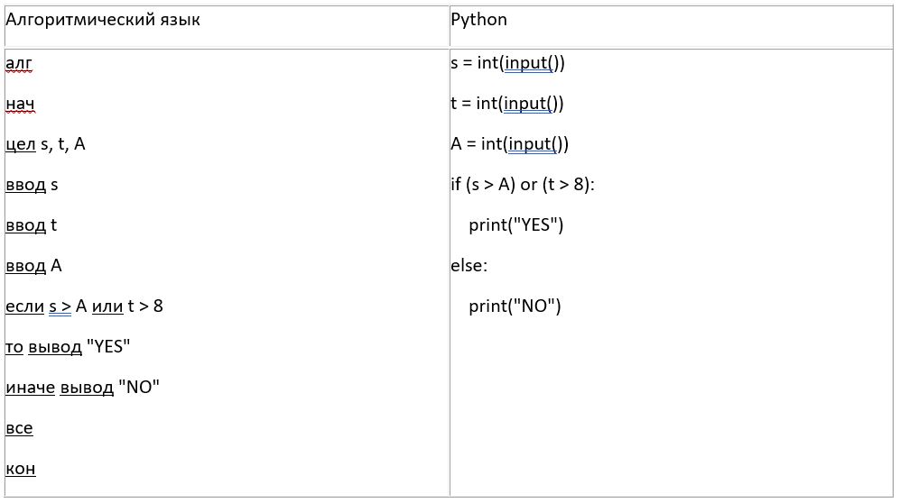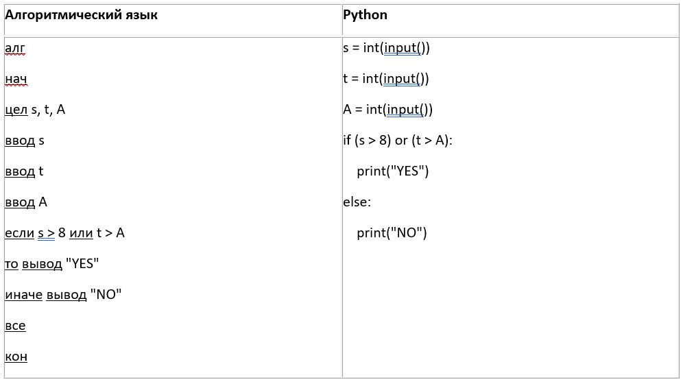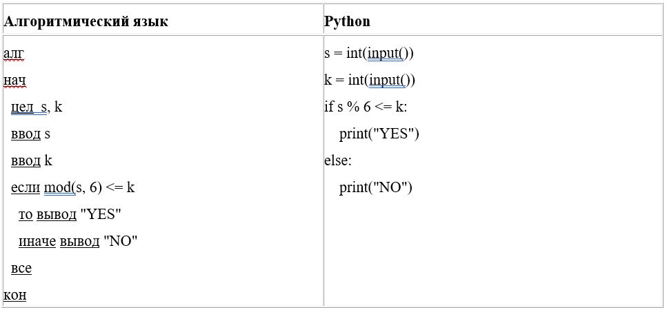 Укажите наименьшее целое значение параметра А, при котором для указанных входных данных программа напечатает «YES» шесть раз.