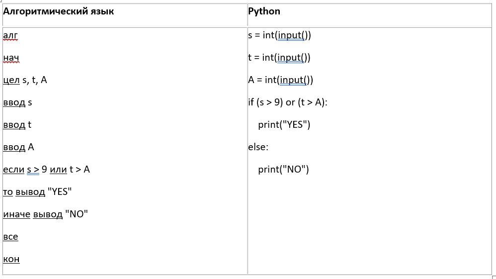Укажите наибольшее целое значение параметра А, при котором для указанных входных данных программа напечатает «YES» шесть раз.