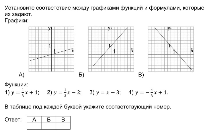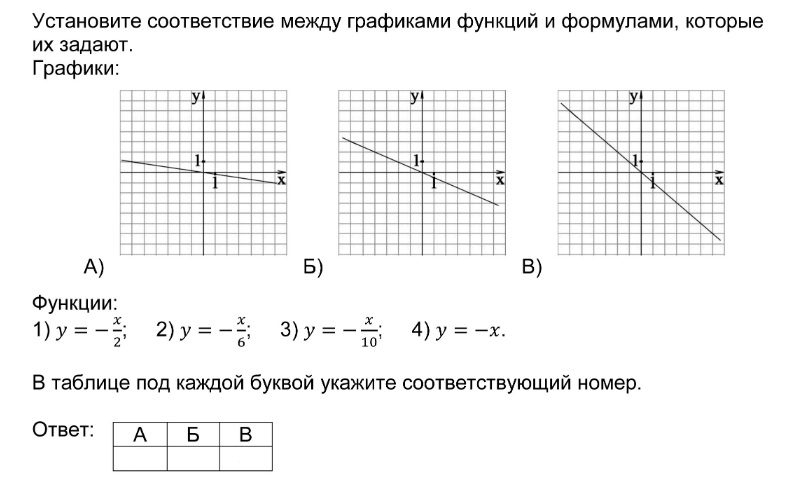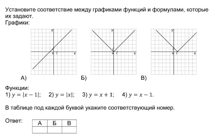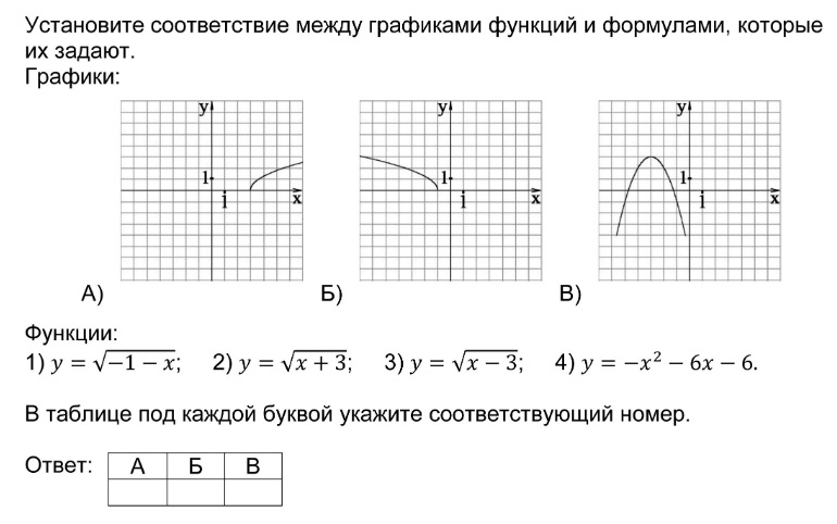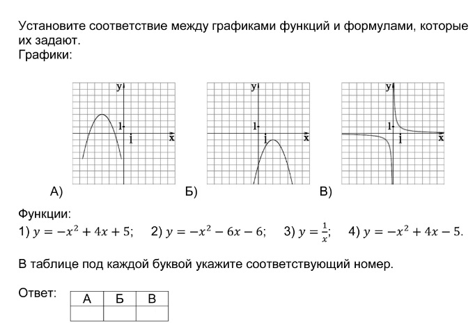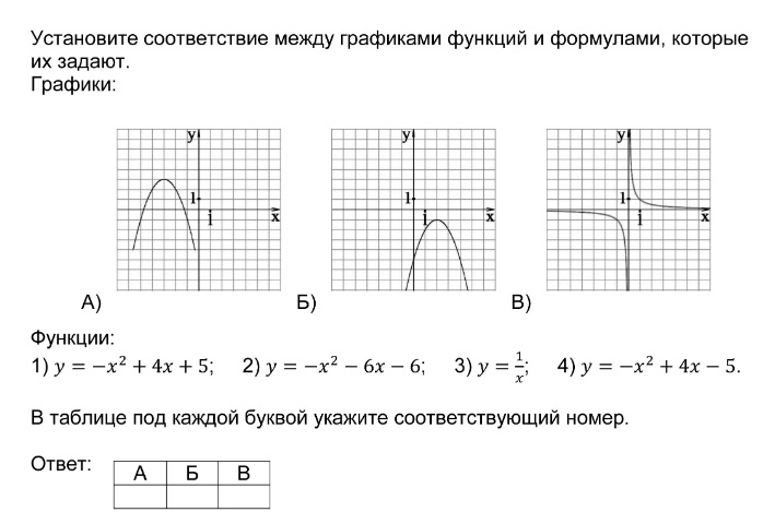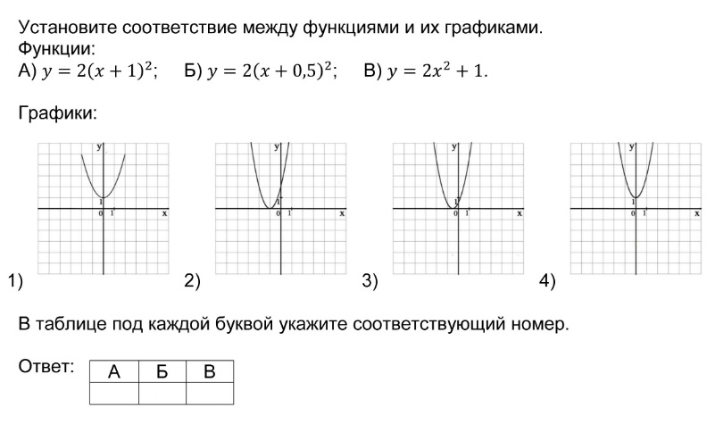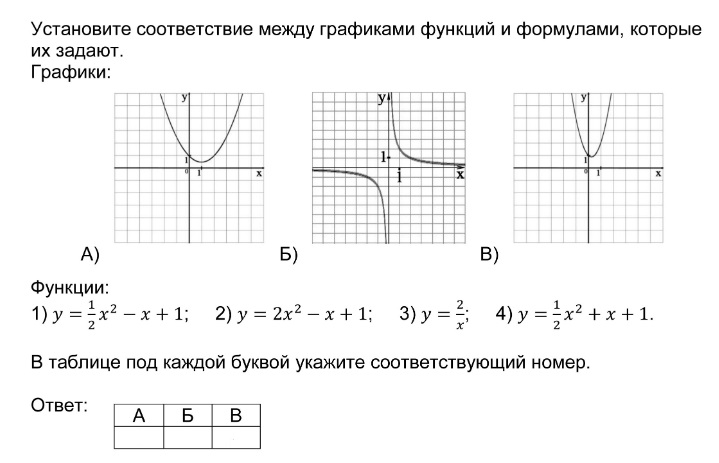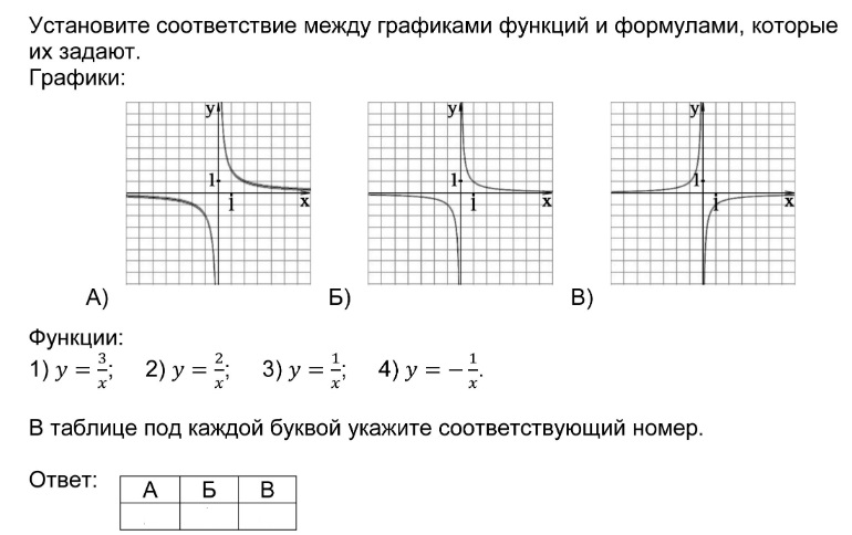 Установление соответствия между графиками функций и формулами, которые их задают