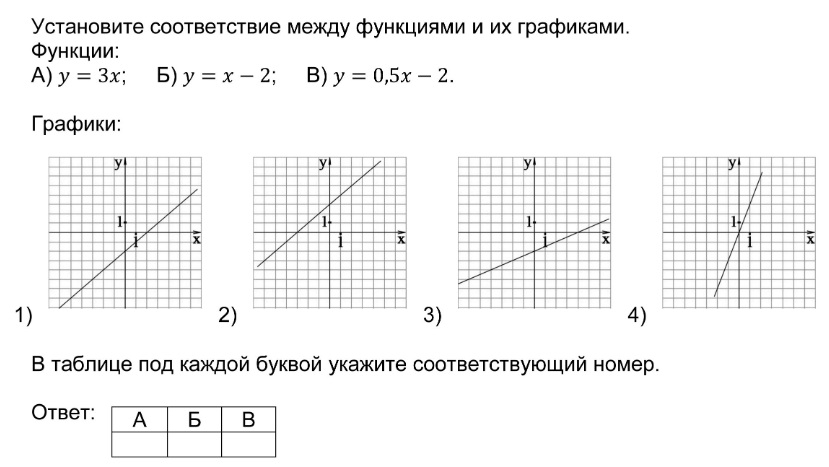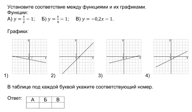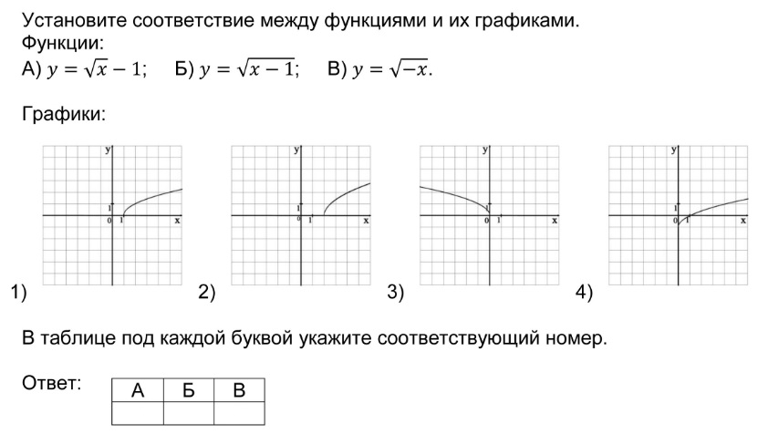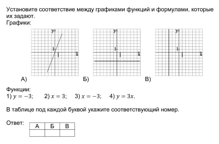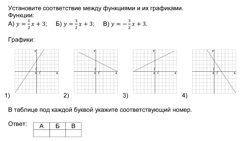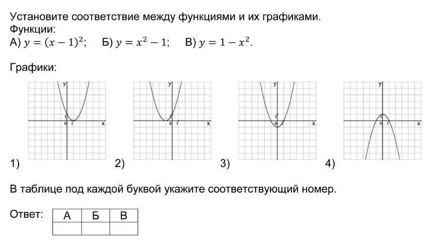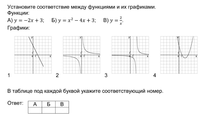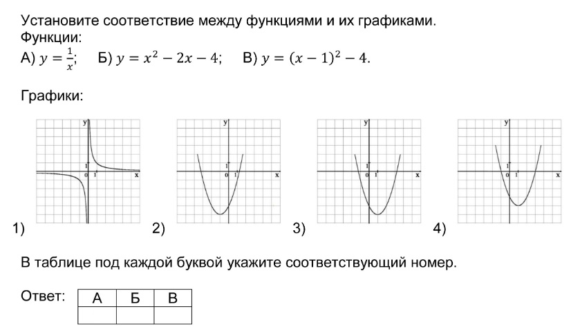 Установление соответствия между графиками функций и формулами, которые их задают