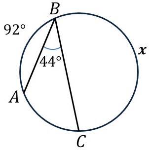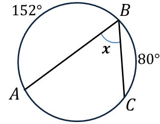 Пользуясь данными рисунка, найдите величину x вписанного угла ABC. В ответе укажите только количество градусов, например, 80.