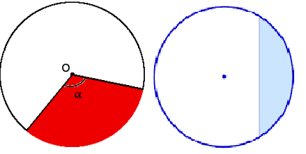 - красным - круговой сектор ; синим - круговой сегмент
