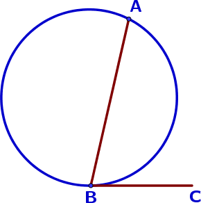 На окружности отмечены точки A и B так, что меньшая дуга AB равна 156°. Прямая BC касается окружности в точке B так, что угол ABC острый. Найдите угол ABC. Ответ дайте в градусах.