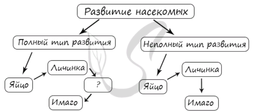 Рассмотрите предложенную схему классификации различных типов развития насекомых. Запишите в ответе пропущенный термин, обозначенный на схеме знаком вопроса.