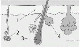 Какой цифрой обозначена сальная железа?