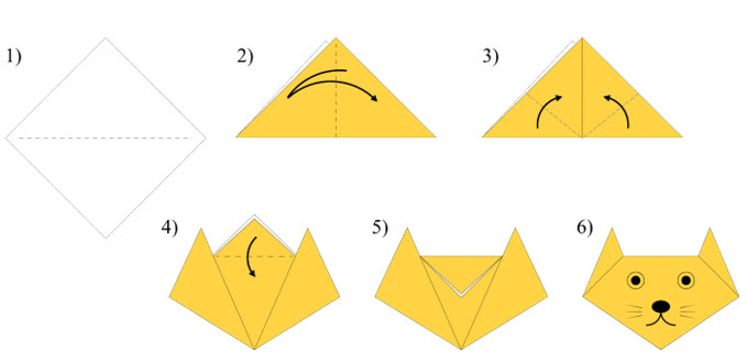 - Загибаем вверх нижние уголки треугольника. Это будут ушки кошки.