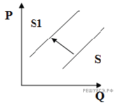На рисунке отражена ситуация на рынке элитной недвижимости: линия предложения S переместилась в новое положение S1 (Р — цена товара, Q — объём предложения). Это перемещение может быть связано прежде всего с (со)