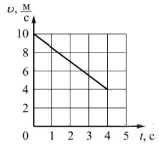 Используя график зависимости скорости υ движения тела от времени t, определите путь, пройденный телом за 4 с от момента времени t=0