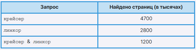 Какое количество страниц (в тысячах) будет найдено по запросу \(крейсер\ |\ линкор\)?