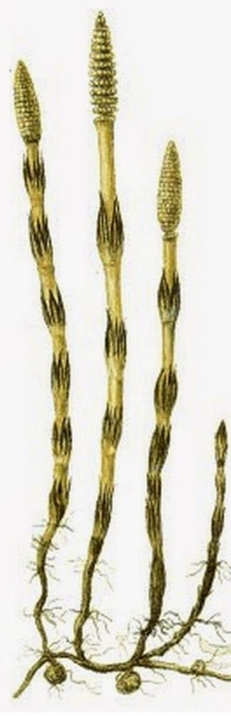Под какими номерами на рисунке указаны части хвоща? Установи соответствие.