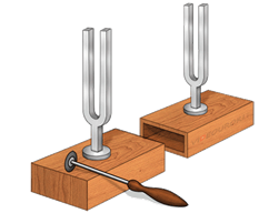 Сначала 1-й камертон не издаёт звук. При каком условии он станет издавать звук, если на него станет падать звук от 2-го камертона?