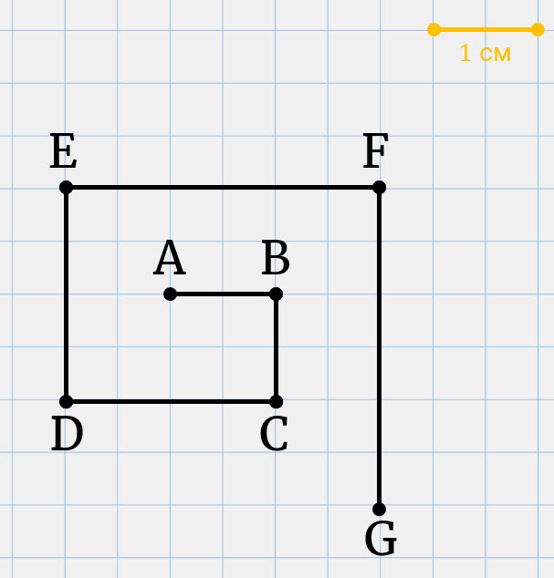 Вычислите длину ломаной, изображённой на рисунке. Ответ укажите в сантиметрах. В ответ запишите только число. Например: 7