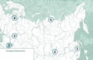 Какими цифрами отмечены на контурной карте следующие географические объекты: озеро Таймыр, река Амур, Ладожское озеро, река Волга, Каспийское море, озеро Байкал?